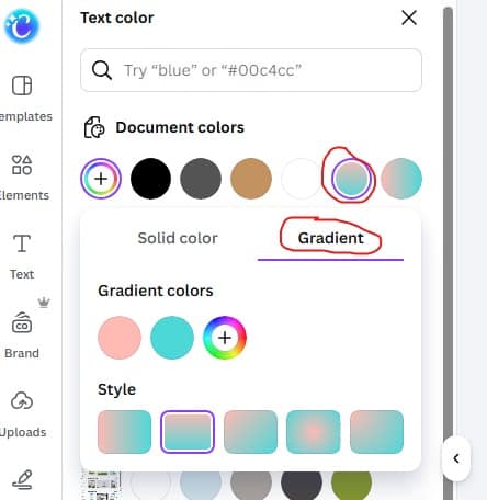 - Canva will auto-pick colors. Replace them with your brand colors or sample hues from your image using the eyedropper.